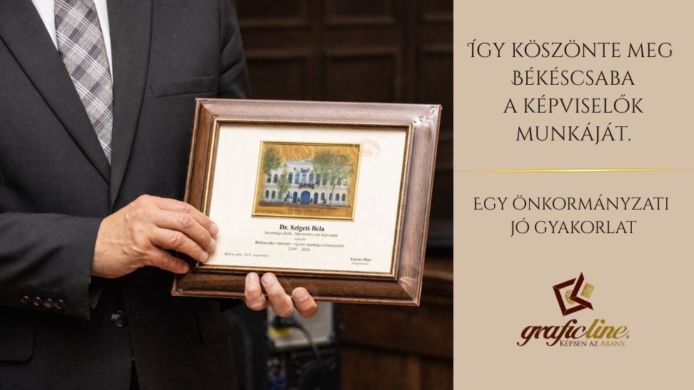 Így esett a választás a Békéscsabai Városházát ábrázoló aranyozott képre, amely a közös munka helyszínét idézi meg, a város identitását hordozza, és időtálló formában jelenik meg.